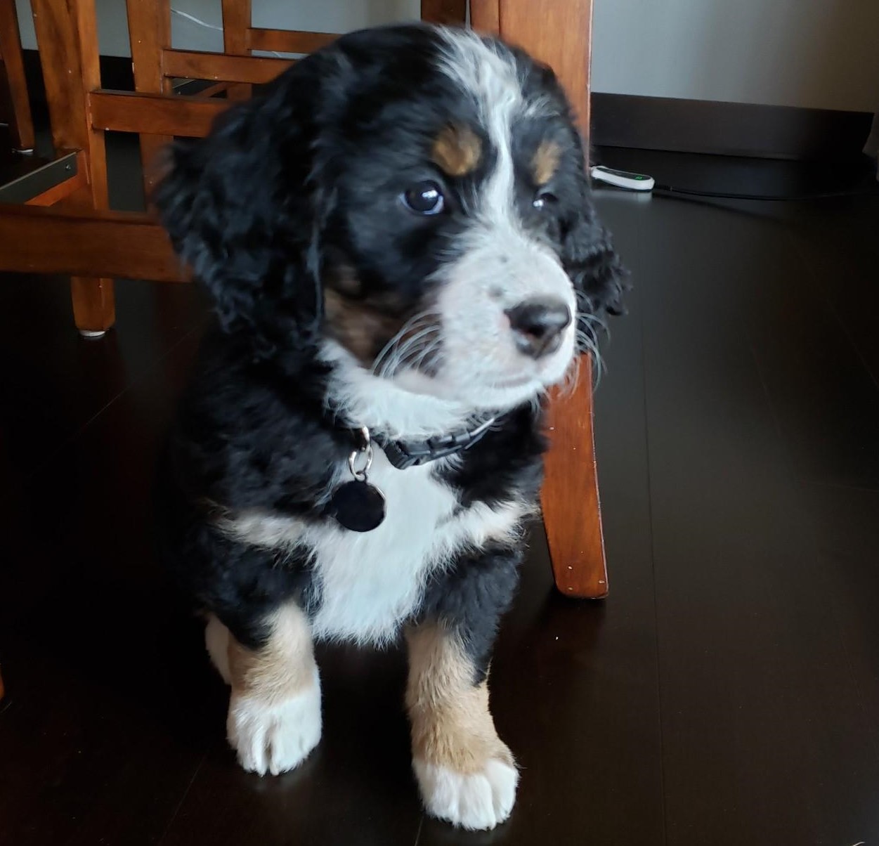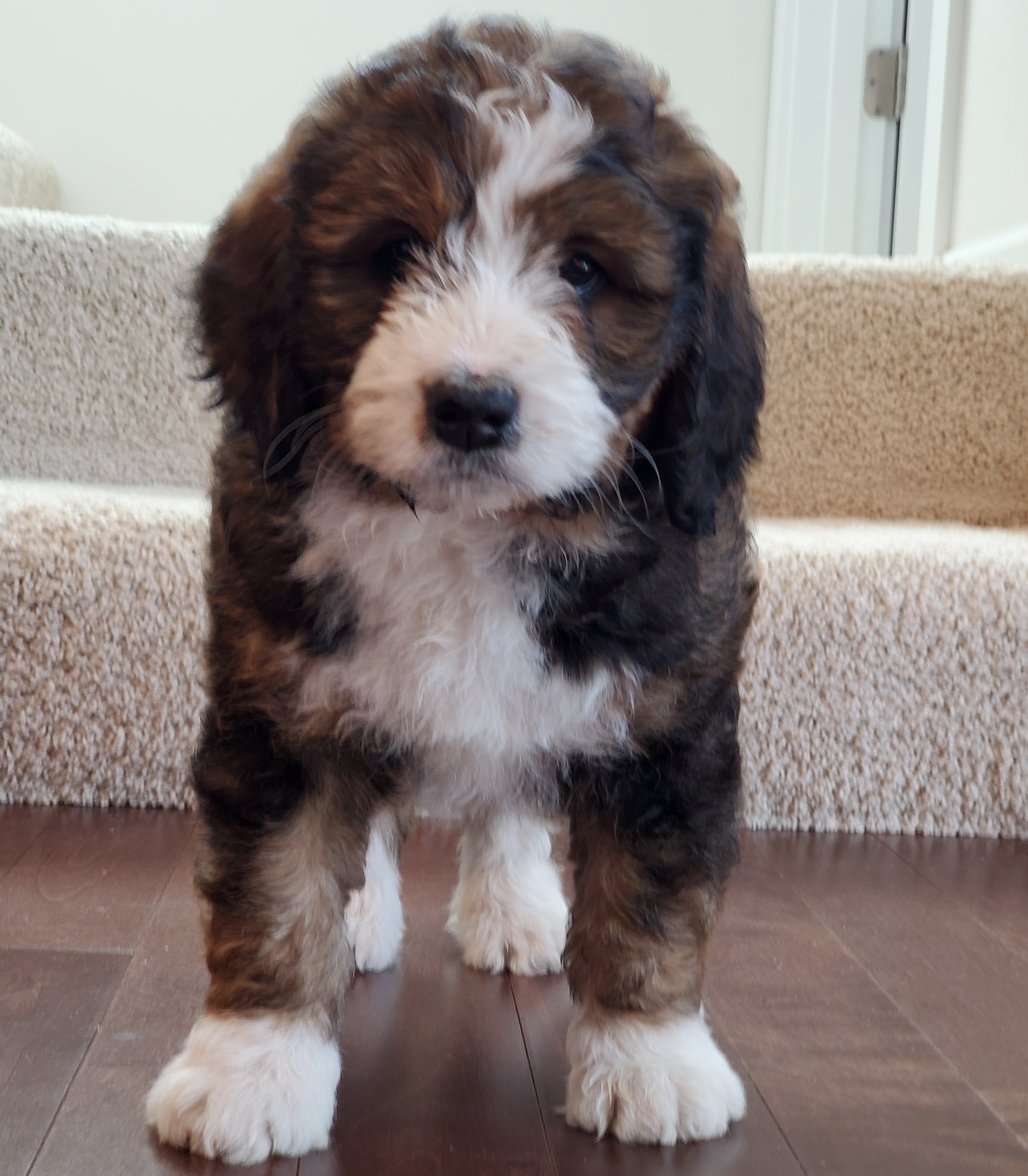 Daisy (Formerly Wyatt) We've had a great experience with buying our puppy from Janet. We are first-time dog owners and had many questions and Janet has been an excellent resource for how to take care of the puppy. The puppies are very well cared for and we appreciated being invited over to visit the puppies before they were old enough to go home. The puppy play dates she hosts with the litter mates are lots of fun too! Overall, we highly recommend Seattle Bernedoodles! Colleen and Dennis, Seattle