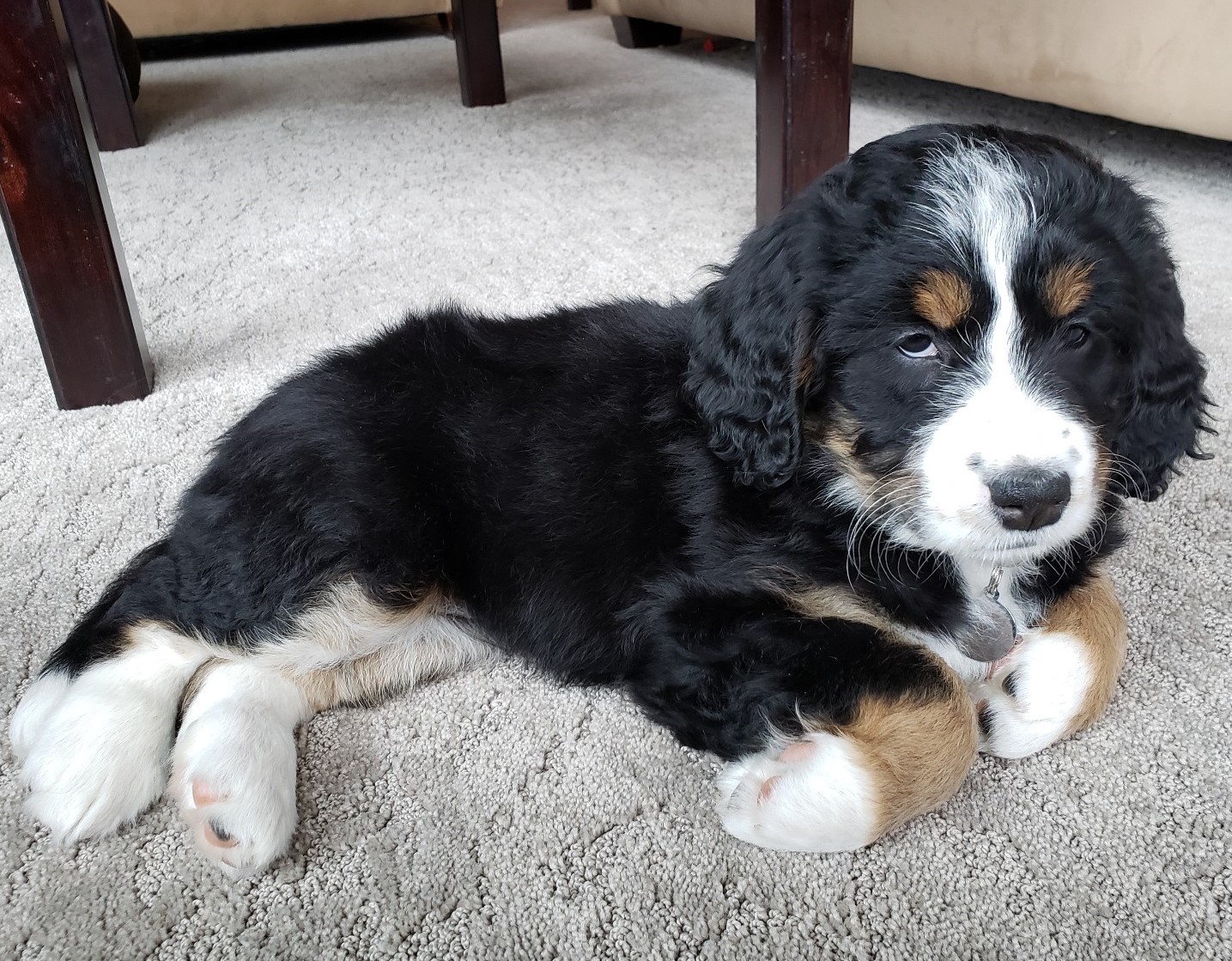 I was introduced to Bernedoodles about 4 months after I lost my dog. You never know if your ready but Janet made my journey very easy. Bella found me after I was sure I was not ready to get another dog. The support of Janet in the puppy process was not just a hand shake. Having play dates with other puppy owners you feel part of the family. It was so fun to see the pups play together as they were getting bigger. Bella is a warm loving dog, loves my 2 cats and cannot get enough sofa time with me. Loyal, non shedding and happy. Truly blessed Bella found me and I cannot thank Janet enough for being so patient with me on my journey. Looking forward to another puppy in the near future to have a companion for Bella.