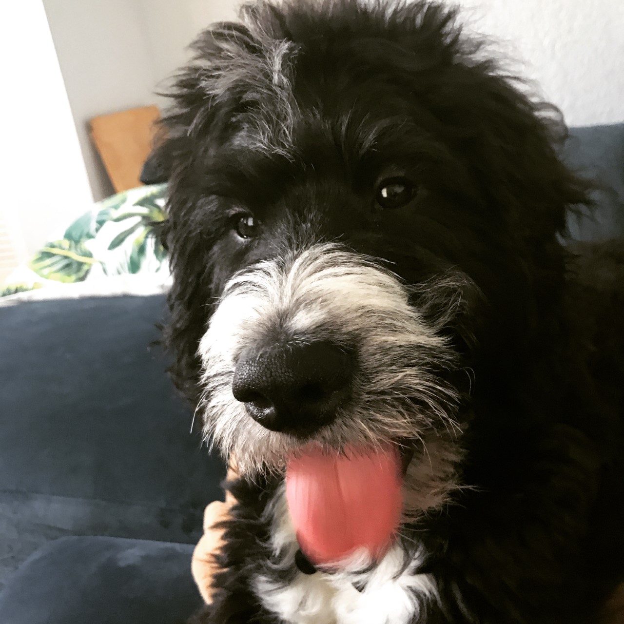 I would describe Kula as having the best qualities of both breeds. We often compare her to what Clack the Bernese would do or Bella the poodle. She is so social and has yet to meet anyone she doesn't like, but she also wants to be very close to us and preferably have all three of us together. Of course, we think she is very smart since she at an early age figured out how to open all the inside doors plus the sliding pocket door. It is fun to challenge her with different games which she seems to enjoy figuring out. She is very gentle with children or when she is playing with other dogs. Because of that characteristic she is very popular with all our neighbors and their grandchildren who always ask to visit her, not us!