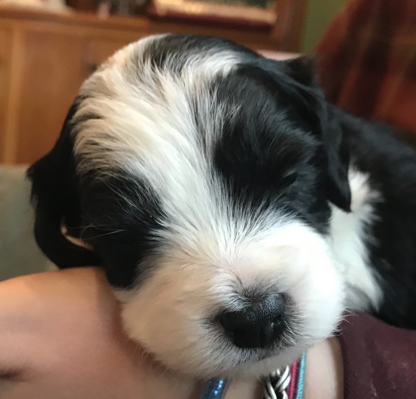We suggest that prospective owners visit the parents prior to choosing a breeder. Then when the puppies are born, visit several times prior to choosing their puppy. This allows them the opportunity to interact with the puppies and see the puppies' personalities develop so they can choose the puppy best for them. From what we've learned not all breeders do this but Janet did.