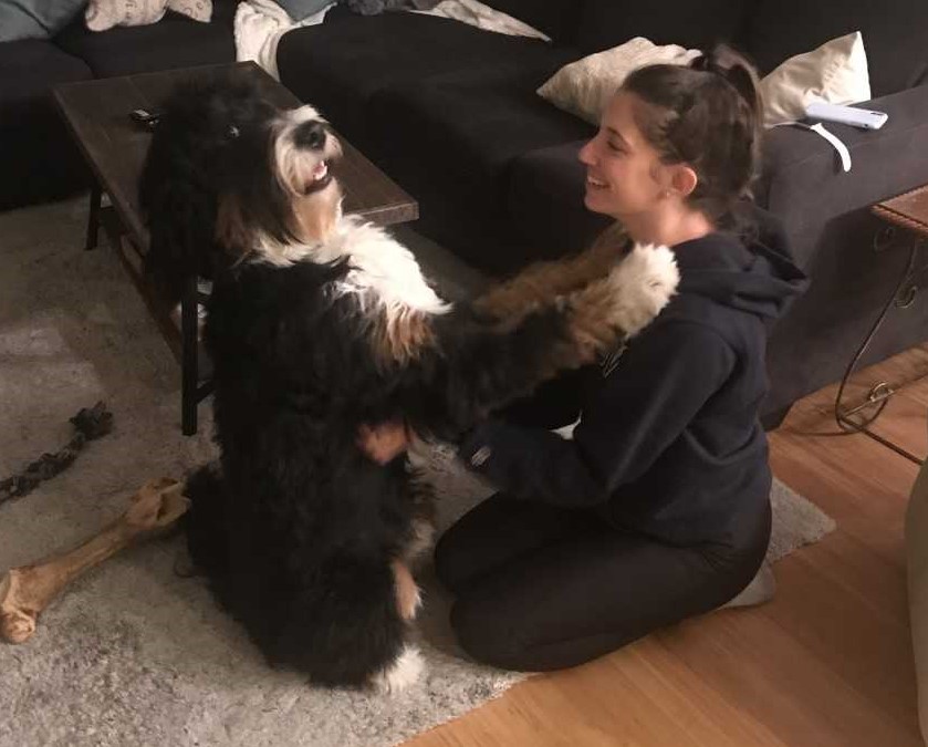 As for dog training, she's very smart and has learned all of the usual commands and several tricks. That said, she's been less 'eager to please' than some breeds we've had in the past - she knows what we're asking but sometimes chooses to ignore our request. We attribute what we call her 'stubborn streak' to the Bernese side of the fam, but it could just be her unique personality. I'd be curious to hear if anyone else has experienced the same. We've only had lab retrievers, standard poodles and German shepherds in the past and they've all been super easy to train by comparison. In any case, she is a constant source of laughter for our family and we love everything about her.