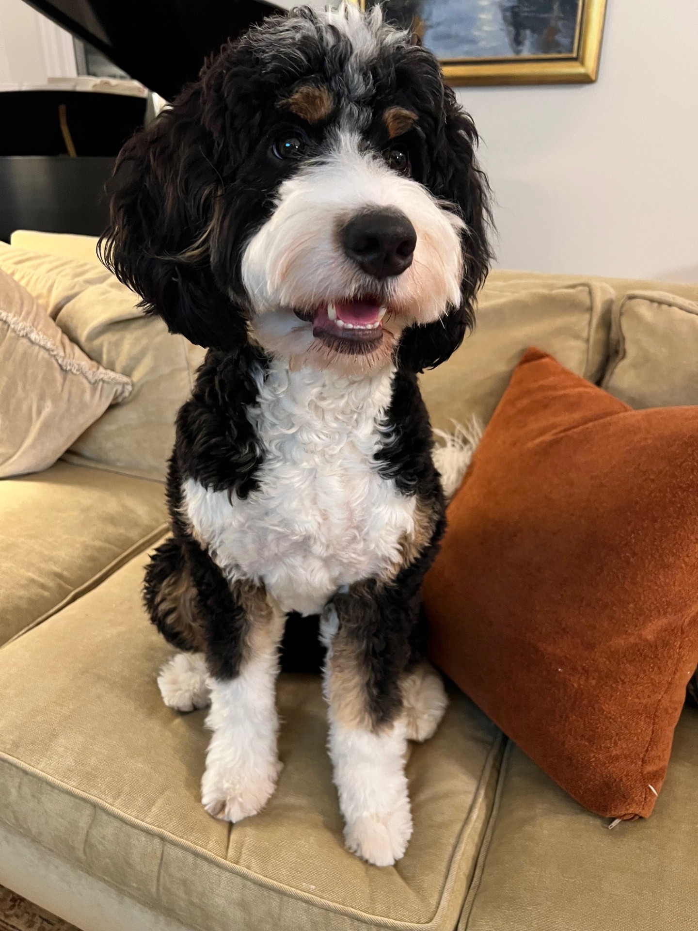 Our mini-Bernedoodle Dobby has quickly become a beloved member of our extended family.
