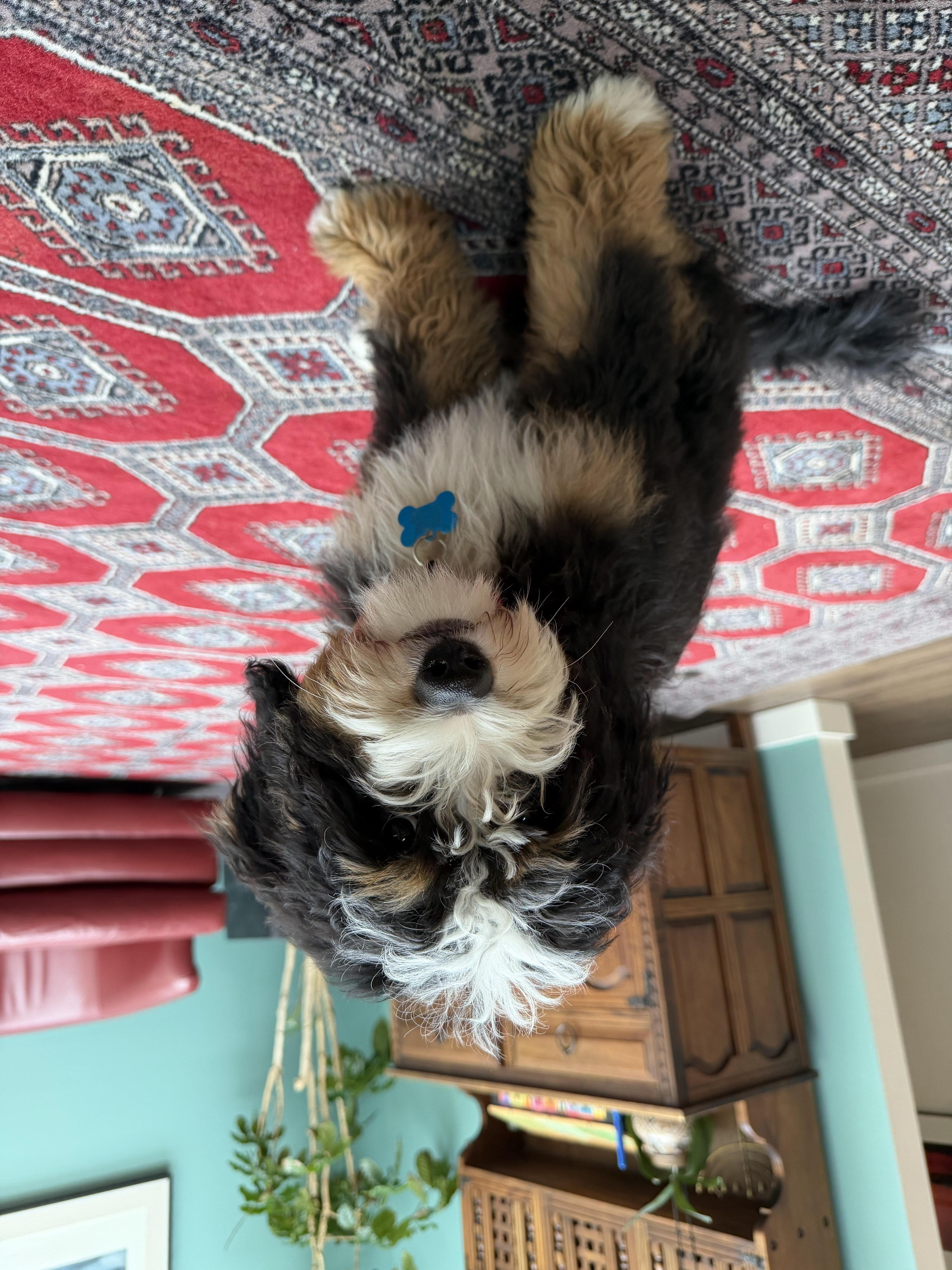 and dogs. He is smart like a poodle and loving like a bernese mountain dog. Our six month old
