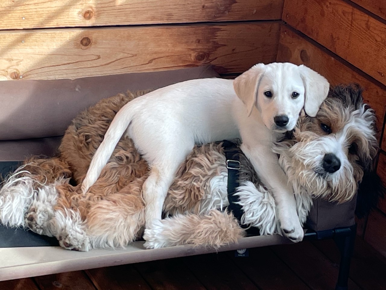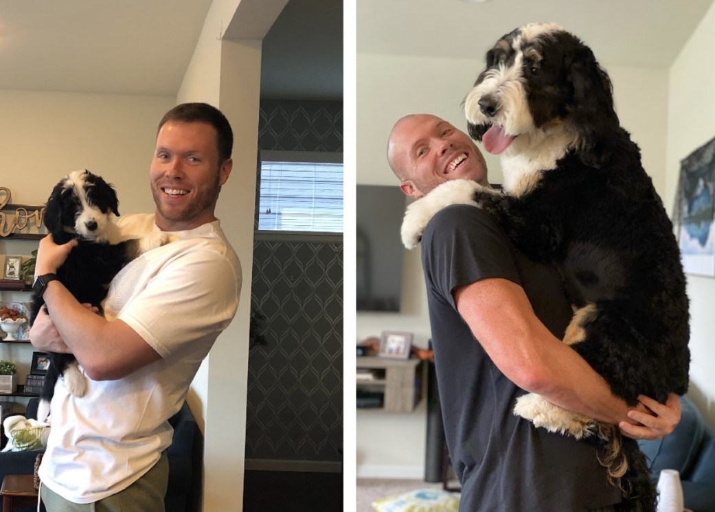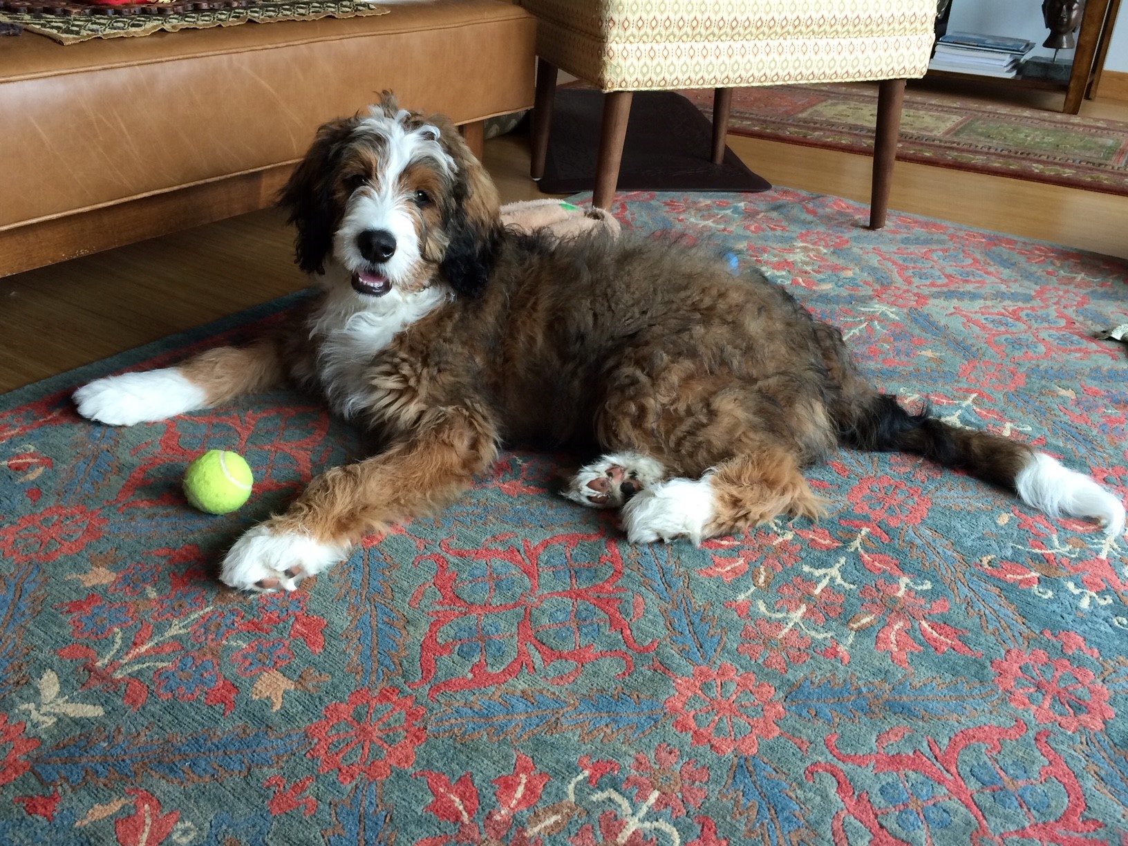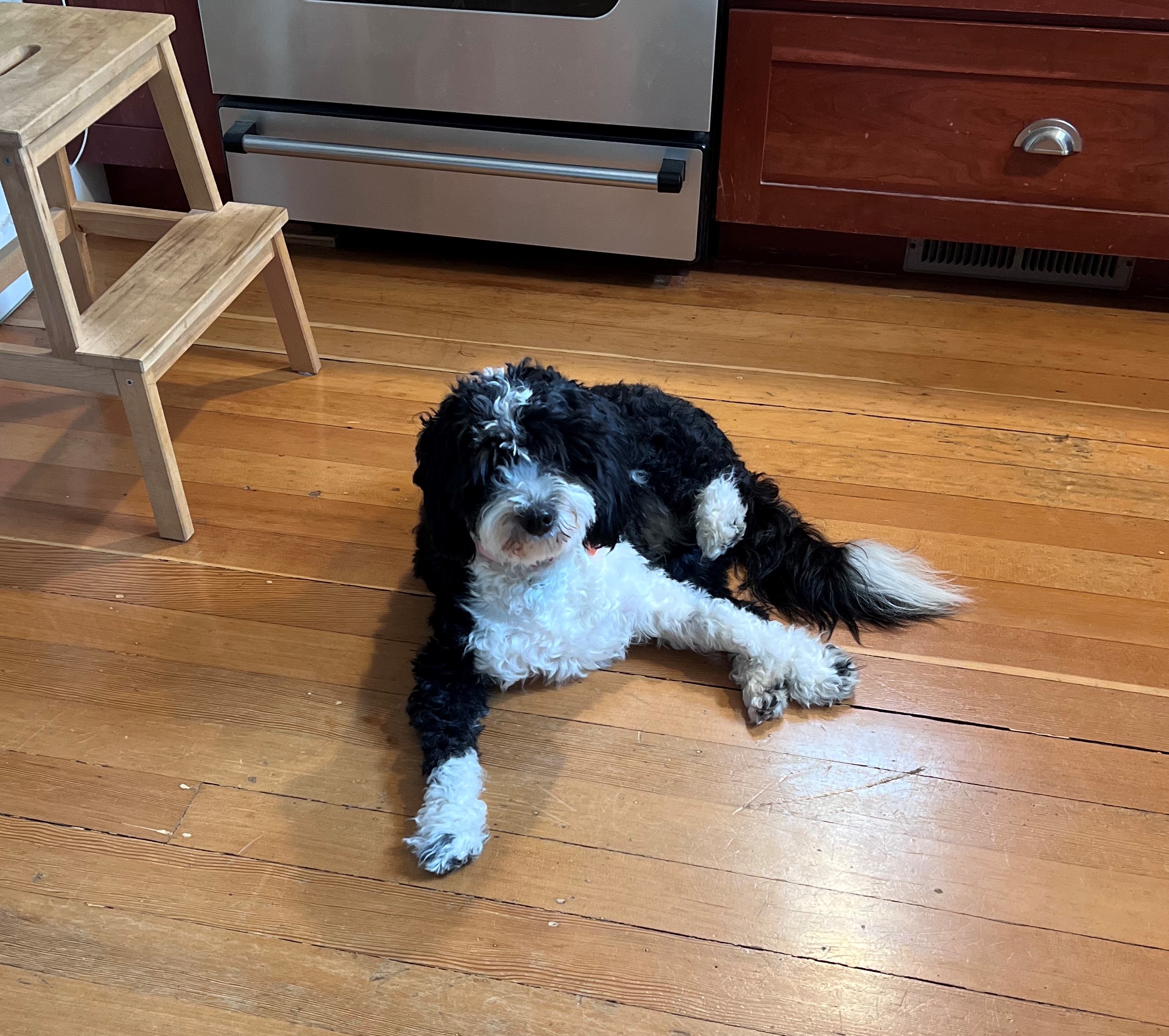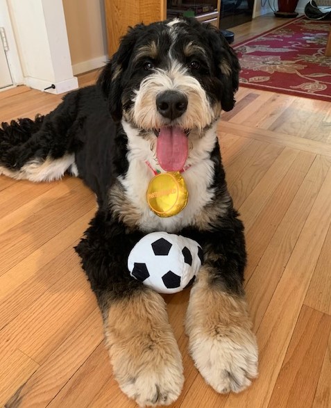 As for dog training, she's very smart and has learned all of the usual commands and several tricks. That said, she's been less 'eager to please' than some breeds we've had in the past - she knows what we're asking but sometimes chooses to ignore our request. We attribute what we call her 'stubborn streak' to the Bernese side of the fam, but it could just be her unique personality. I'd be curious to hear if anyone else has experienced the same. We've only had lab retrievers, standard poodles and German shepherds in the past and they've all been super easy to train by comparison. In any case, she is a constant source of laughter for our family and we love everything about her.