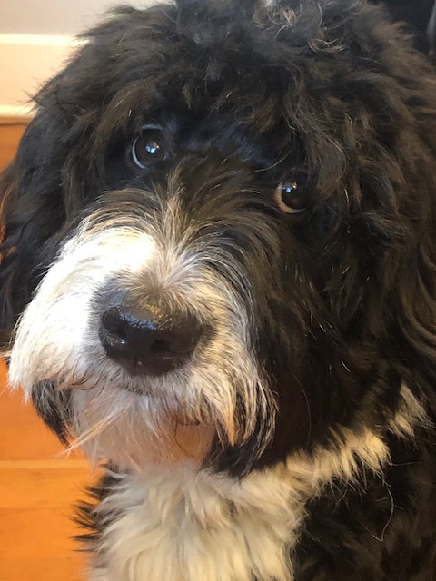 I would describe Kula as having the best qualities of both breeds. We often compare her to what Clack the Bernese would do or Bella the poodle. She is so social and has yet to meet anyone she doesn't like, but she also wants to be very close to us and preferably have all three of us together. Of course, we think she is very smart since she at an early age figured out how to open all the inside doors plus the sliding pocket door. It is fun to challenge her with different games which she seems to enjoy figuring out. She is very gentle with children or when she is playing with other dogs. Because of that characteristic she is very popular with all our neighbors and their grandchildren who always ask to visit her, not us!