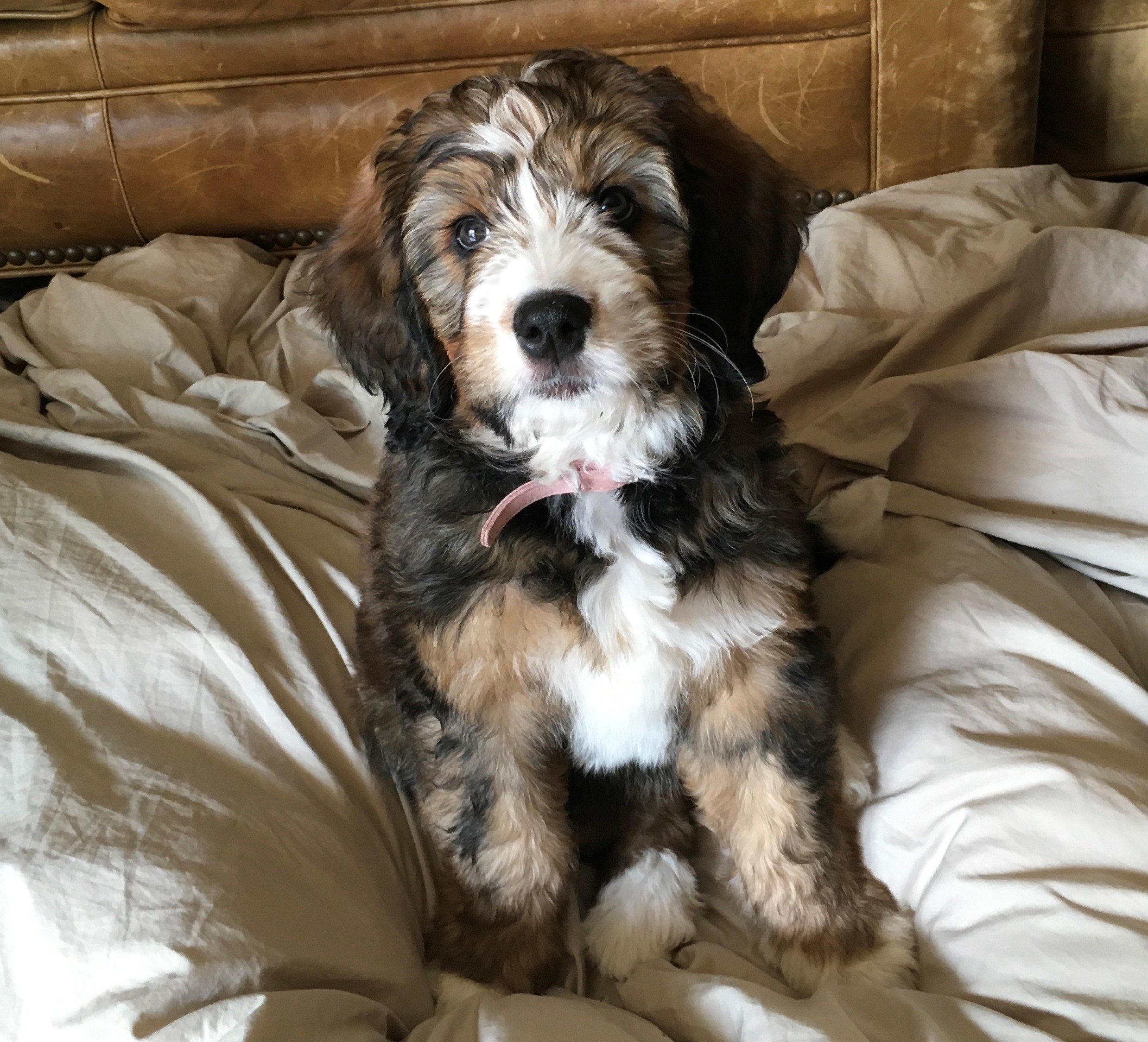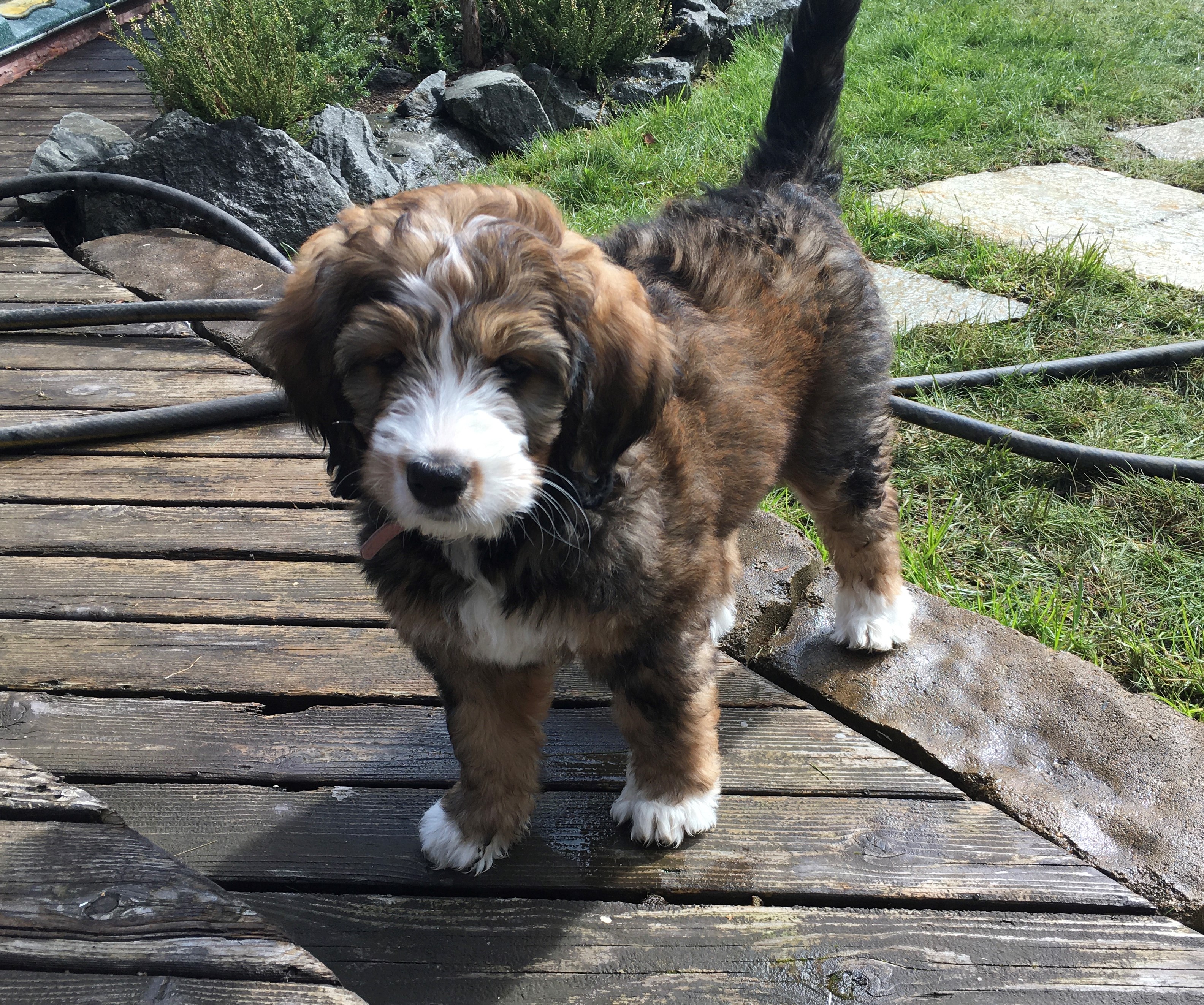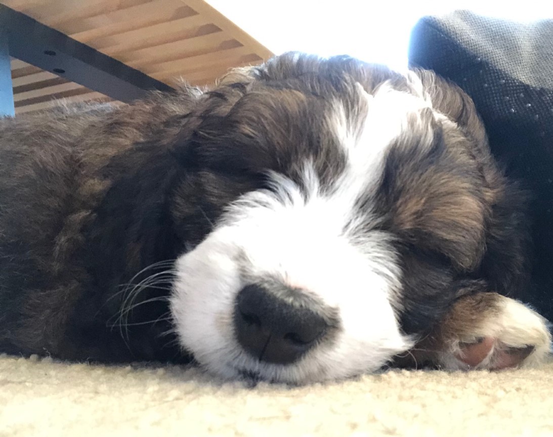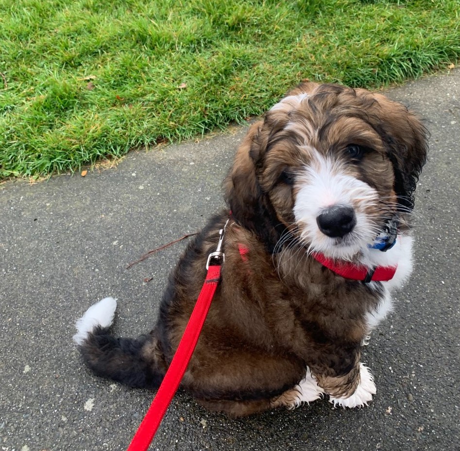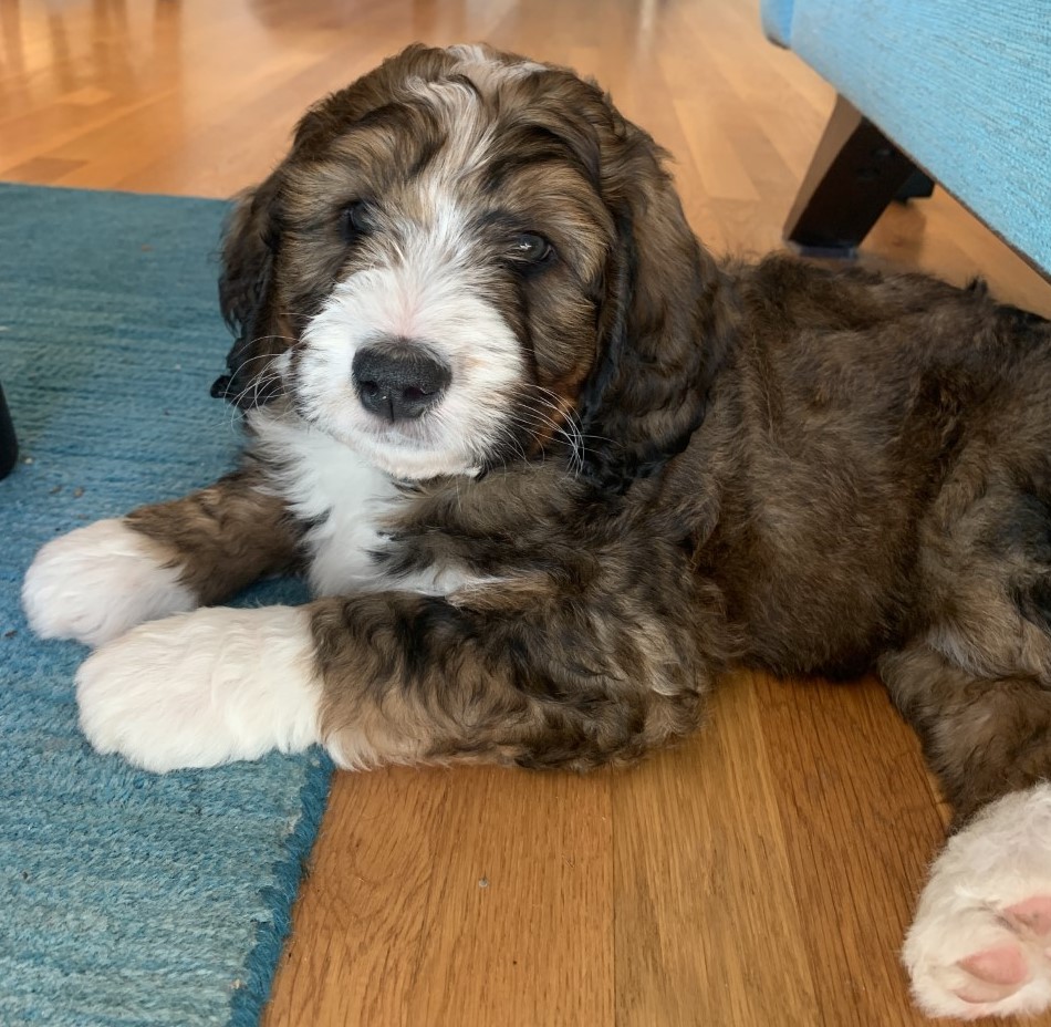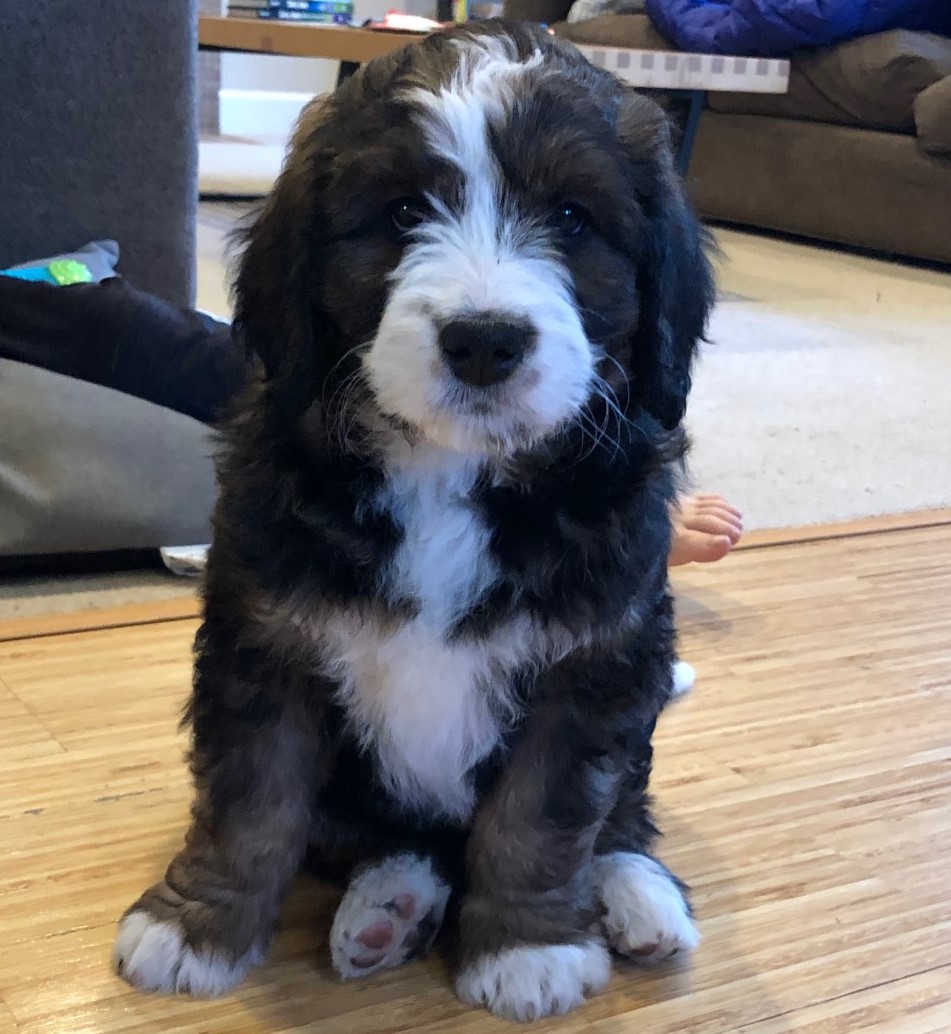 Daisy (Formerly Wyatt) We've had a great experience with buying our puppy from Janet. We are first-time dog owners and had many questions and Janet has been an excellent resource for how to take care of the puppy. The puppies are very well cared for and we appreciated being invited over to visit the puppies before they were old enough to go home. The puppy play dates she hosts with the litter mates are lots of fun too! Overall, we highly recommend Seattle Bernedoodles! Colleen and Dennis, Seattle