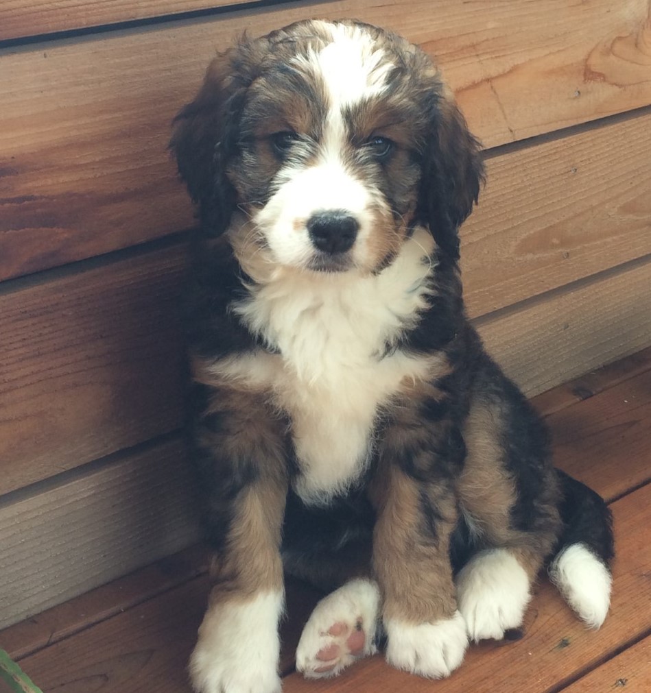 Reagan (Formerly Pete) We found Janet through an online search for Bernedoodle breeders in the Pacific Northwest. She was very easy to work with, and you can tell she is fully invested in the well-being of her pups. Our girl, Reagan, is 7 months old now, and she is the major source of laughter and entertainment in our household. We have two kids under the age of 8, and she is so great with them. She is definitely higher energy than our previous dog (a pure-bred Bernese Mountain dog), but not overwhelmingly energetic. Her coat is beautiful, and so far, SHED-FREE which has been amazing. I would absolutely recommend Janet to others looking for a bernedoodle pup.