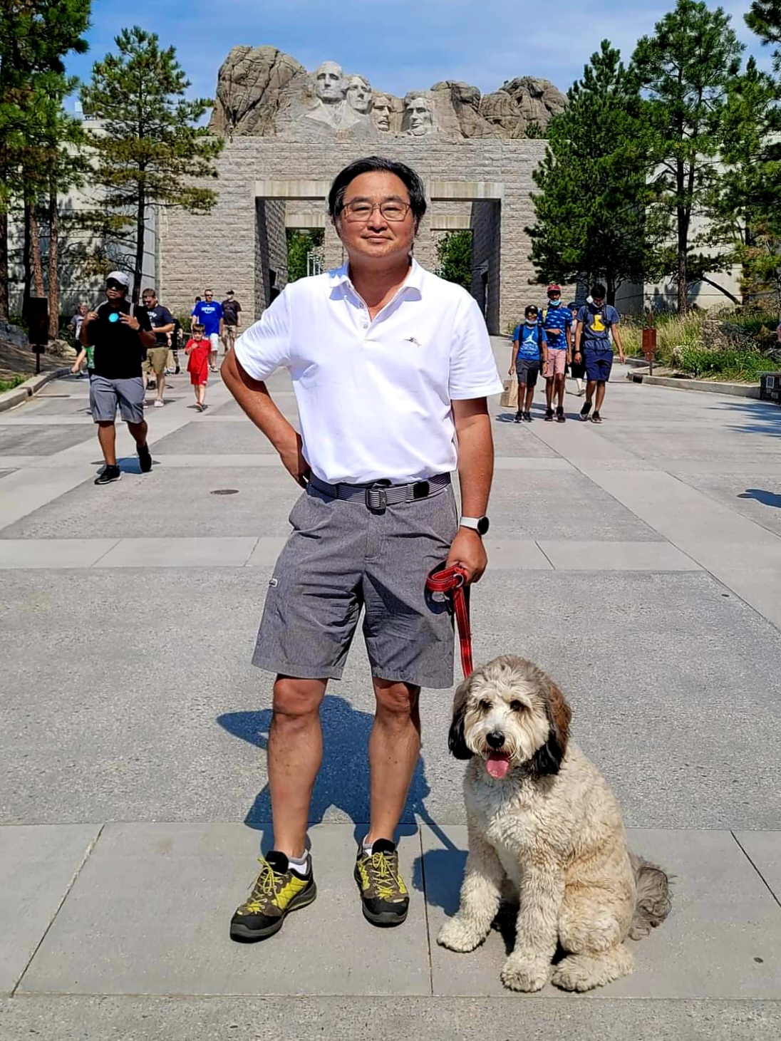 We have two teens, so we often have a houseful of kids and she loves the attention. We also have a cat just a few months older than Dixie and they've been very close from the start. She enjoys playing with other dogs, but is especially drawn to other poodles and doodles. She is just under 45 lbs, which is the perfect size as far as we're concerned. She has the typical poodle body shape - long legged, lean torso. She's graceful like a poodle, smart, playful, affectionate. She travels easily, enjoys car trips, loves camping and mountain hikes (especially off-leash!). So far, she's not a big fan of water but we're working on it!