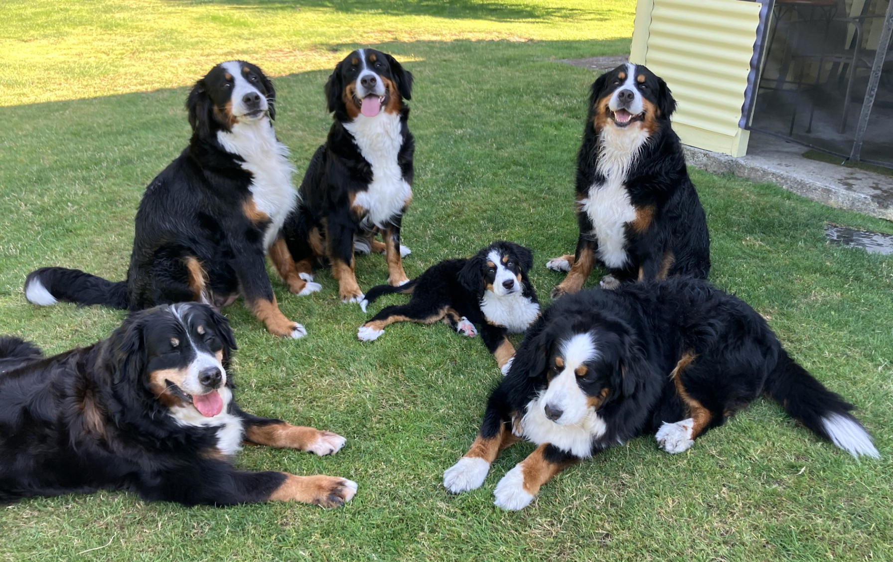 Below is an updated picture of my girls including my new Bernese puppy. (They