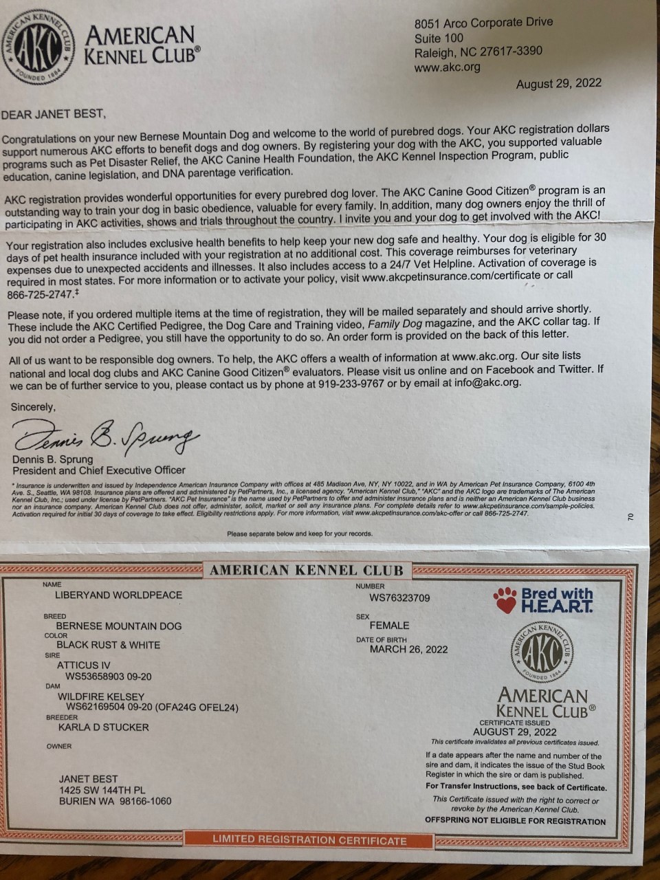the puppies would receive from him and the Bernese mom.