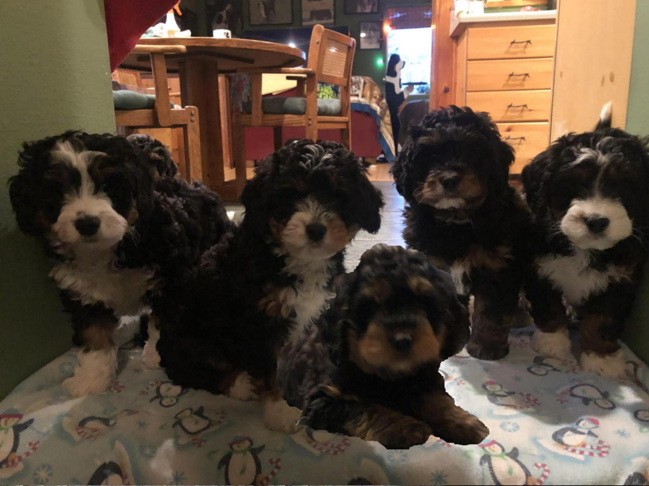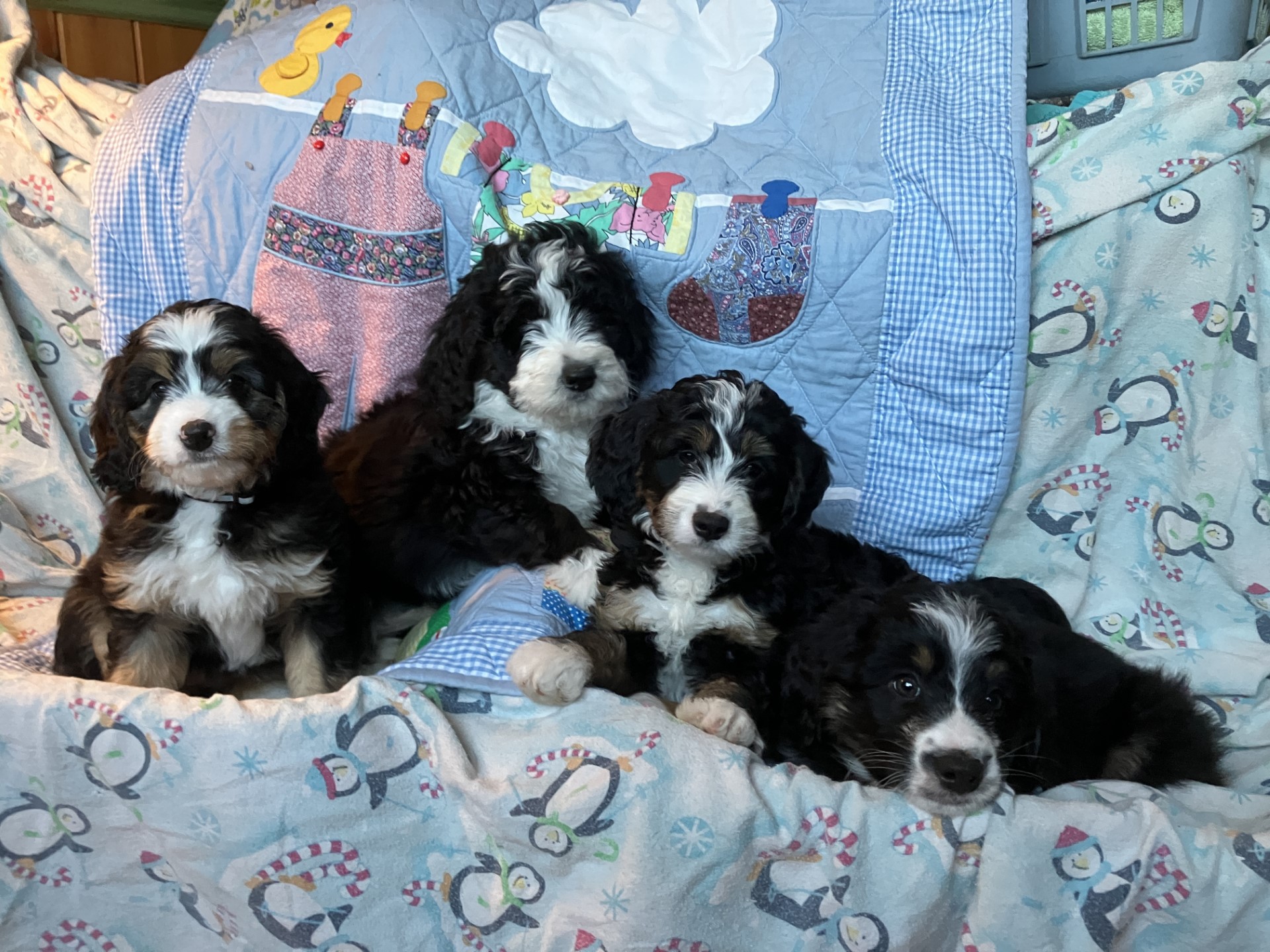 Prior to Bernedoodles, these are my Bernese Mountain Dog puppies and their parents: